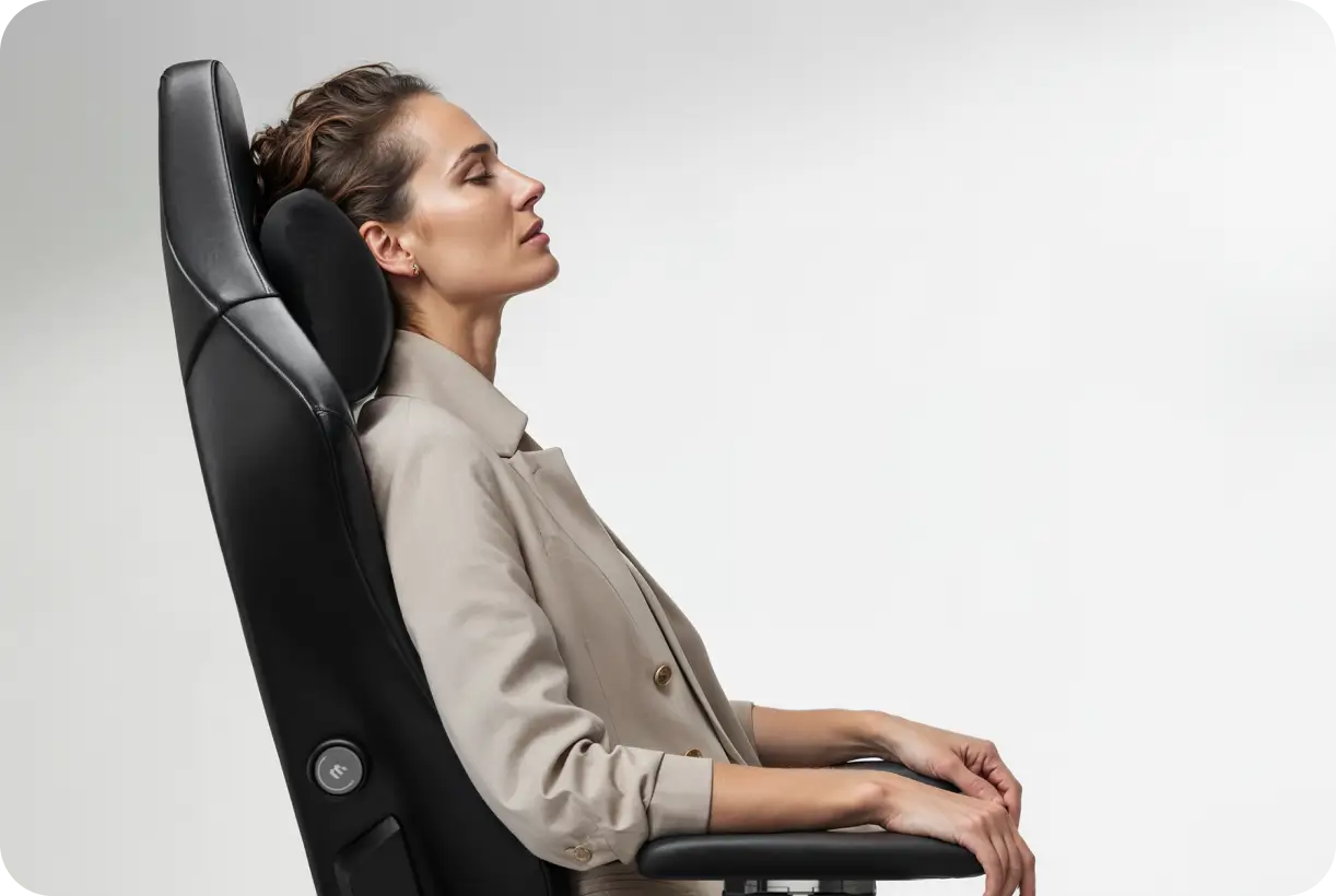 3)Shoulders & upper backRest upper back on chair, pull shoulder blades together, and release to natural position.